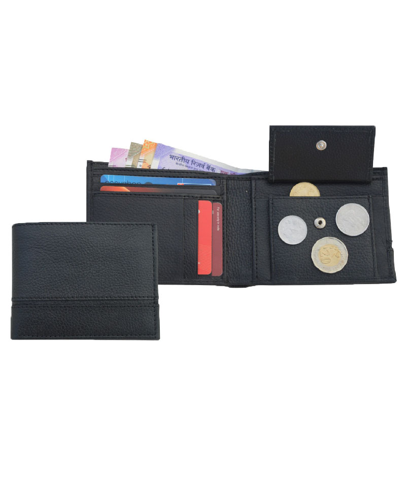 Mens' bifold wallet with 5 card slots & a coin pocket