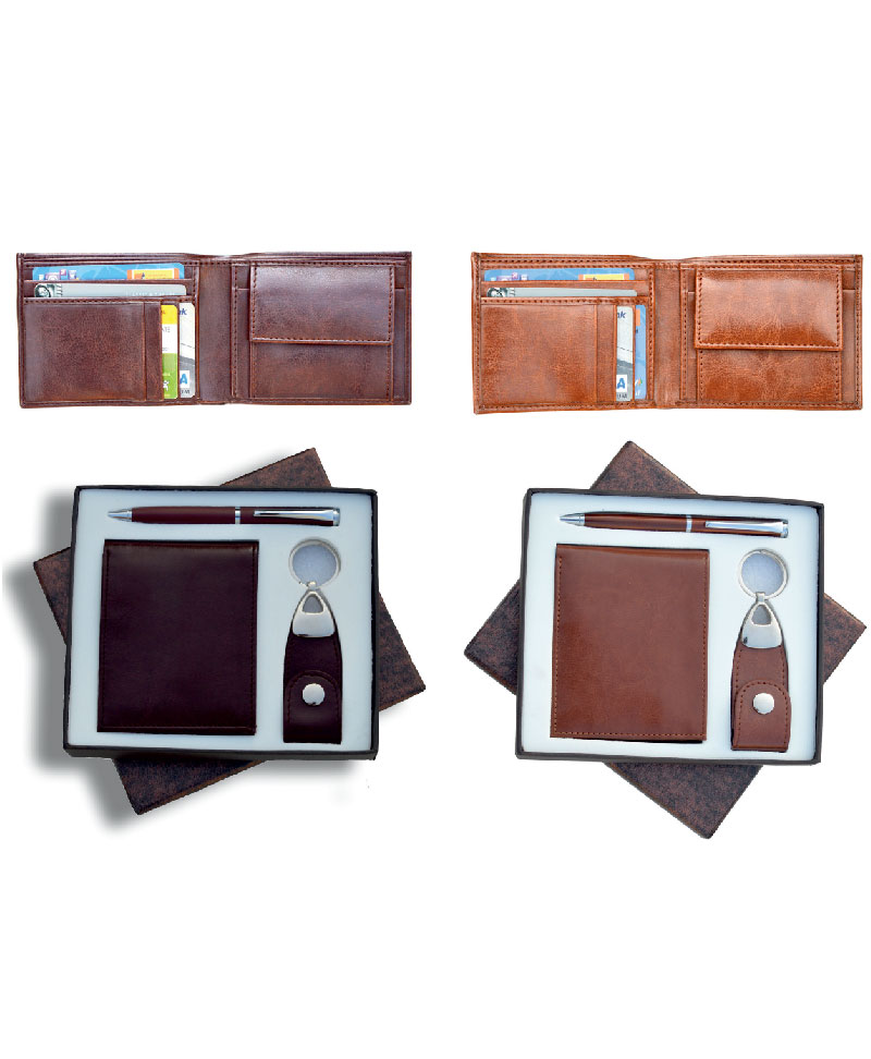 This is a gift combo of genuine leather wallet & key ring with metal fitting, packed in a premium box. Economical yet premium gift combo. Can used for gifting at various events